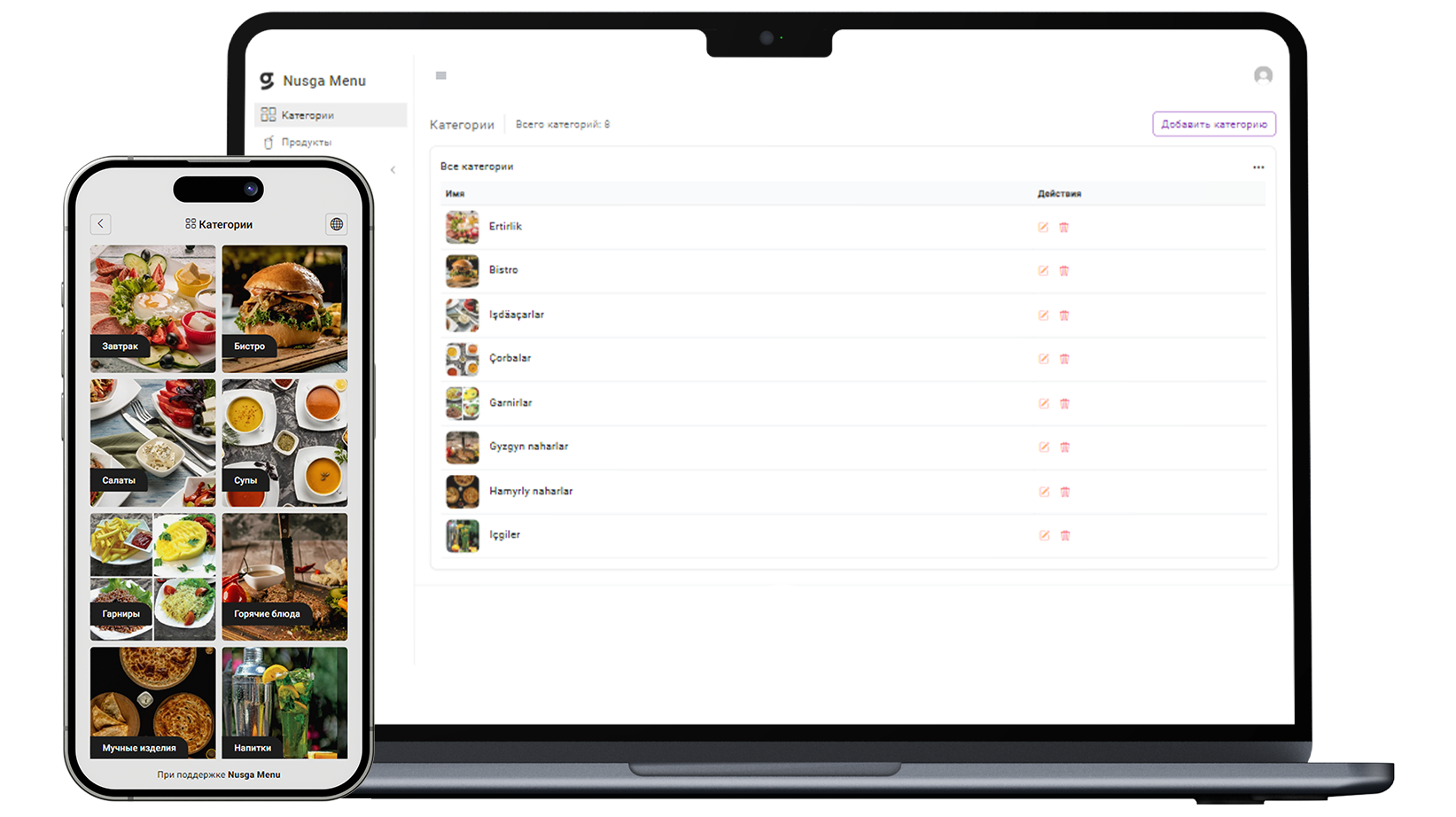 Добро пожаловать в Nusga Menu! Обнаружьте новые возможности цифрового меню для вашего бизнеса.